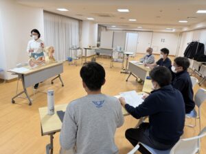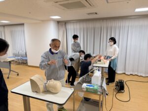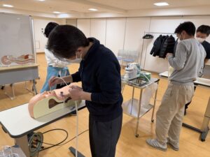 ・ 実技: 吸引の手順をステップごとに確認し、実際に人体模型を使用した実習を行いました。